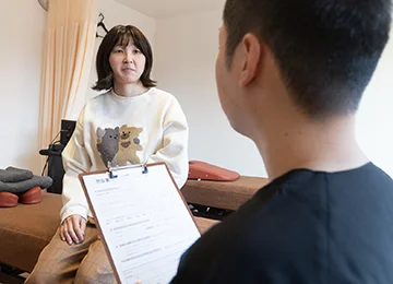 肩こりや腰痛などの局所的な症状だけでなく、自律神経の乱れや血流の低下、筋肉の緊張バランスなど、身体全体の状態を確認しながら施術を行います。